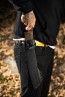 We wanted the handles to be thick enough to fill each user's hand like a hatchet or small ax handle would, so we decided to use sandwiched Micarta. It's well rounded for comfort and the black canvas Micarta underneath the green canvas Micarta adds even more to the aesthetics of this piece.
